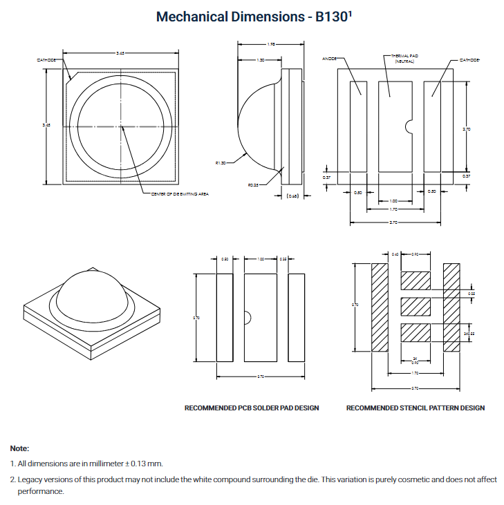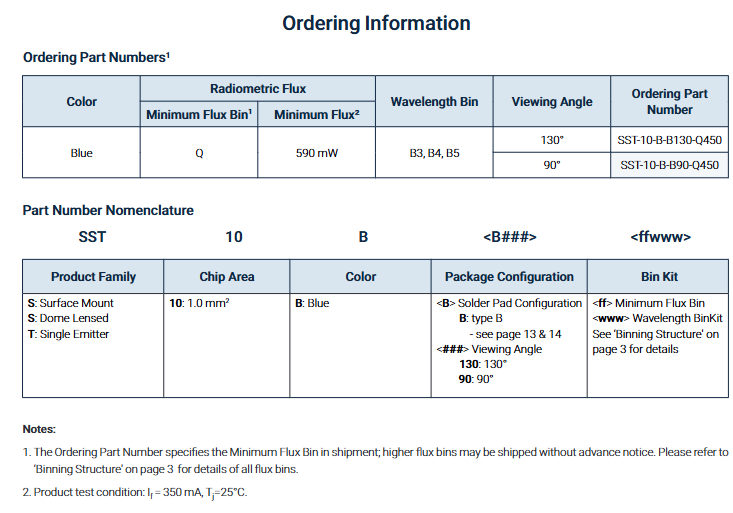 ชิป LED สีน้ำเงินกำลังสูง Luminuss SST-10 ซีรีส์ ความยาวคลื่น 450 นาโนเมตร ขนาด 3.45x3.45 มม. ค่า Ra90 5 วัตต์