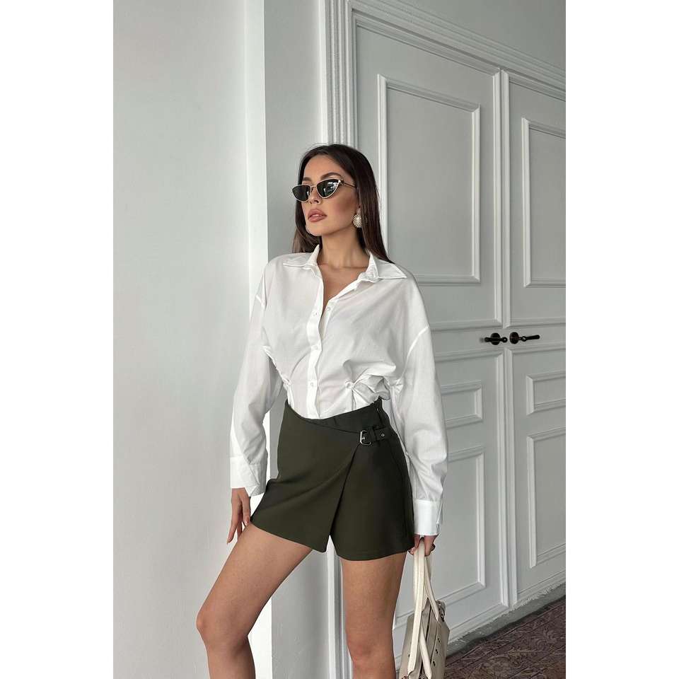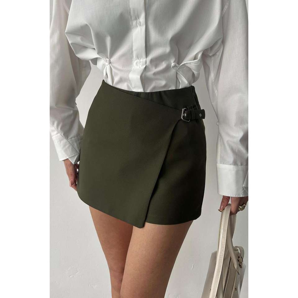 กระโปรงขาสั้นทรงเอวสูงสีกากี Luna สำหรับผู้หญิง ผ้าทอโพลีเอสเตอร์ผสมฝ้าย ปรับขนาดได้ แฟชั่นกระโปรง