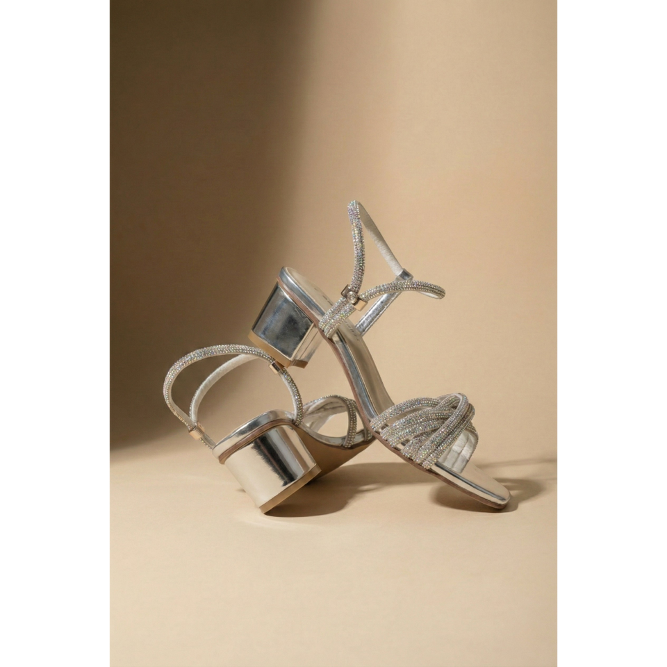 รองเท้าส้นสูงแบบรัดข้อเท้า Luna Metallic Criss-Cross รุ่น 503 S ดีไซน์ทันสมัย หัวเหลี่ยม ปิดด้วยเชือกผูก พร้อมพื้นรองเท้าแบบแพลตฟอร์ม