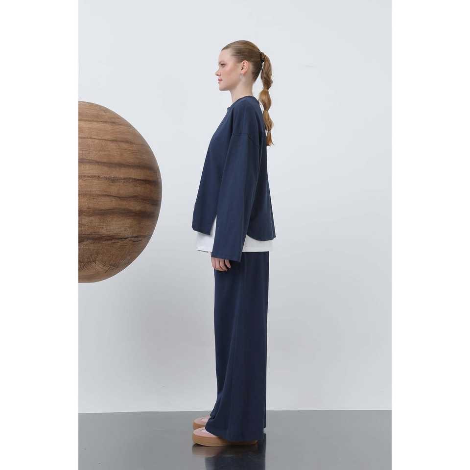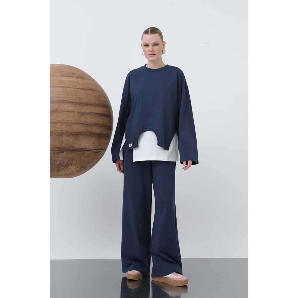 เสื้อสเวตเชิ้ตโอเวอร์ไซส์แบบอสมมาตรสำหรับผู้หญิง Luna รุ่น 320G ผ้าถักระบายอากาศ สีดำ 32223SWT
