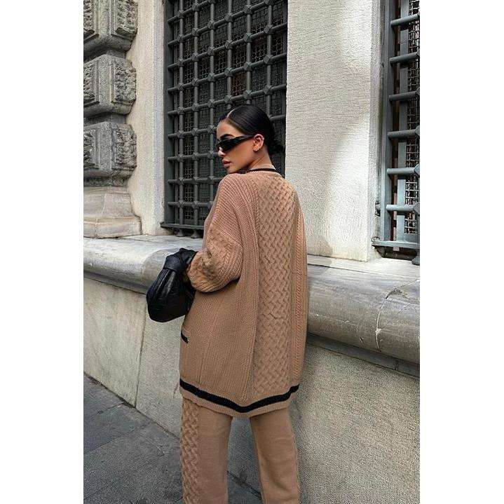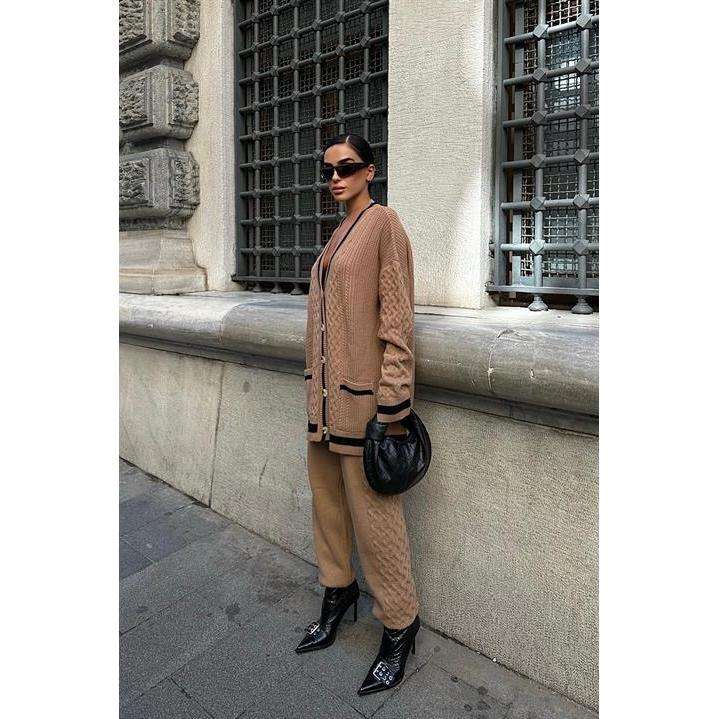 ลูนาเดล 9974 เสื้อคาร์ดิแกนถักและชุดกางเกงทรงตรงเอวสูง