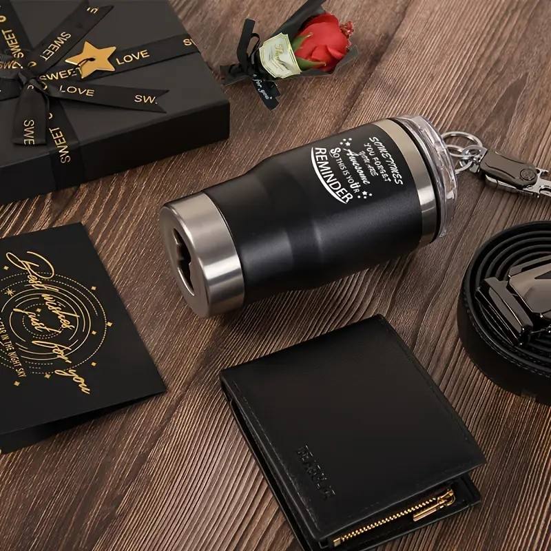 ชุดของขวัญสำหรับผู้ชาย Lunaire 7 ชิ้น พร้อมกระเป๋าสตางค์ เข็มขัด แก้วกาแฟ ชุดของขวัญวันวาเลนไทน์สำหรับสามี ของขวัญวันเกิด ของขวัญวันพ่อ