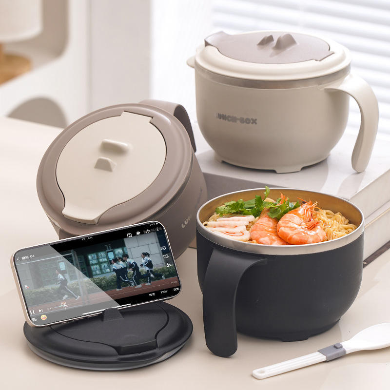 กล่องข้าวบะหมี่กึ่งสำเร็จรูปสแตนเลส 316 ความจุขนาดใหญ่พร้อมหูหิ้วสำหรับนักเรียนและพนักงานออฟฟิศ
