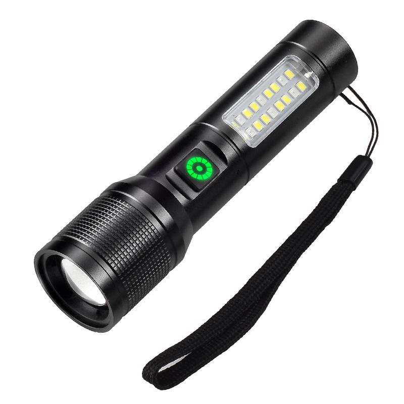 ไฟฉาย LED ลูโอเมน 18650 แบบชาร์จไฟได้แบบพกพาพร้อมไฟด้านข้างแบบ COB ไฟเตือนสีแดง X2