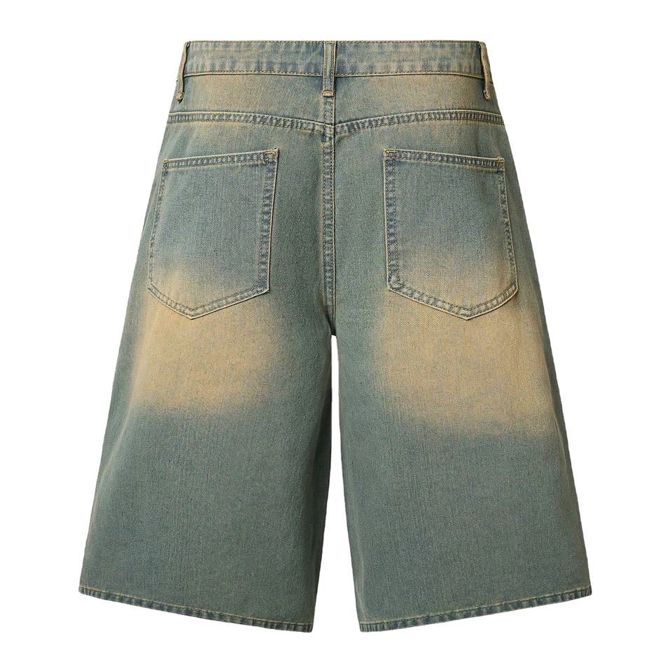 Lupin Felt Denim Manufacturer Custom Double Waist Knees Diamonds Rhinestone Baggy Cargo Jeans Denim Shorts Men's