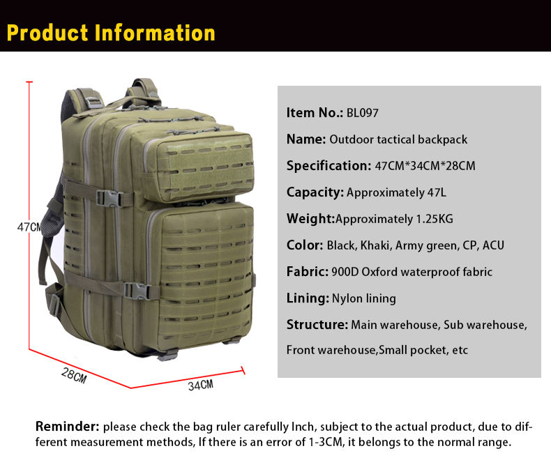 Lupu 47L 900D Oxford Backpack Bag Tactical Customized Logo Oem/odm Good Stability Tactical Backpack