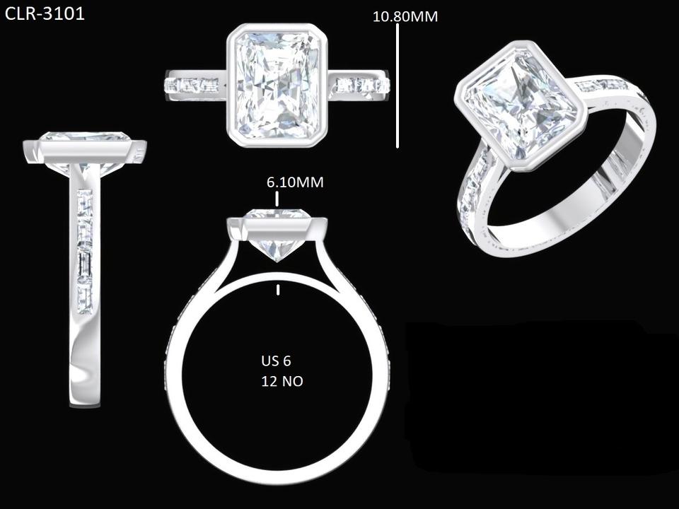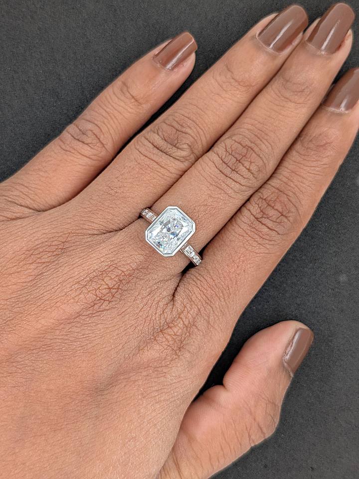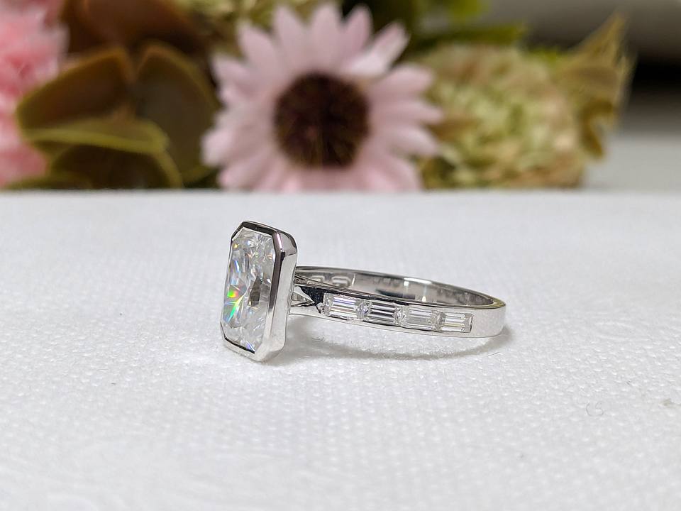แหวนหมั้นสไตล์วินเทจประดับเพชรโมอิสซาไนต์ทรงเรเดียนท์คัท 2.50 กะรัต จาก Lurba Jewels พร้อมเพชรทรงบาแกตต์ด้านข้าง ตัวเรือนทองคำ 10K แท้
