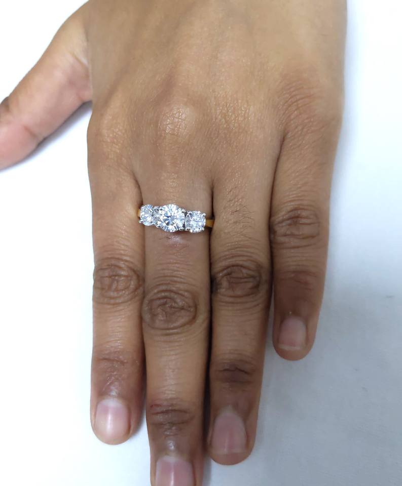 แหวนหมั้นเพชรโมอิสซาไนต์ทรงสามเม็ด 2 กะรัต ยี่ห้อ Lurba Jewels สำหรับผู้หญิง ทองคำขาว/ทองคำเหลือง 14K แท้ พร้อมใบรับรอง IGI