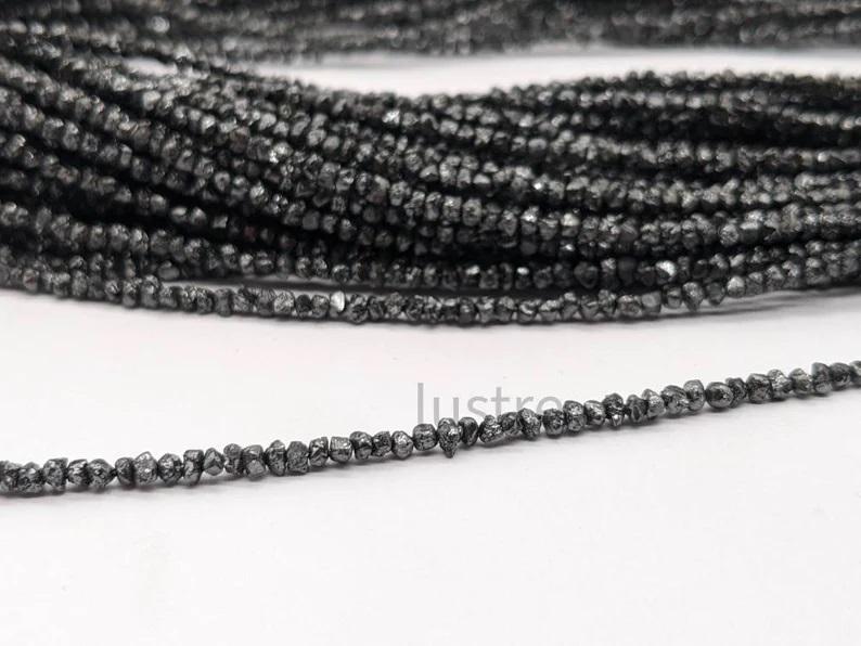 ลูกปัดเพชรสีดำเงาส่วนบุคคล15นิ้วสายที่ไม่ได้เจียระไนได้รับการรับรองจากบุคคลที่สามสมบูรณ์แบบของขวัญวันเกิดของเธอ100% ธรรมชาติ