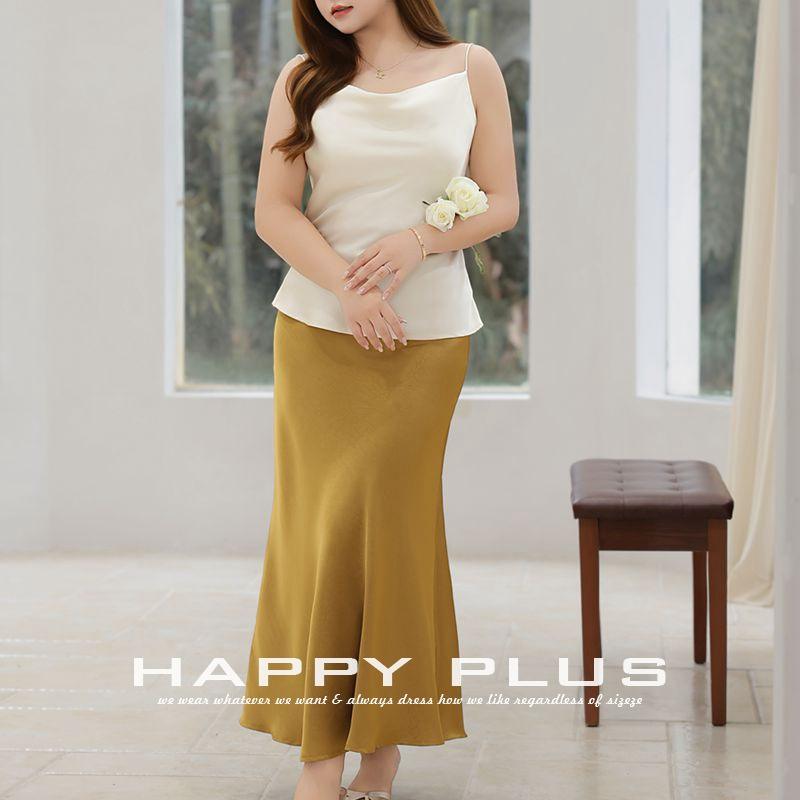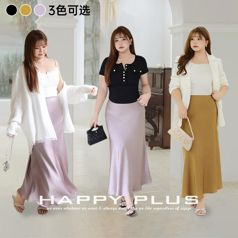 กระโปรงทรงหางปลาผ้าซาตินอะซิเตทเทียมเนื้อมันวาว ไซส์พลัส ความยาวปานกลาง สีพื้น กระโปรงผู้หญิง เอวธรรมชาติ รุ่น N9214