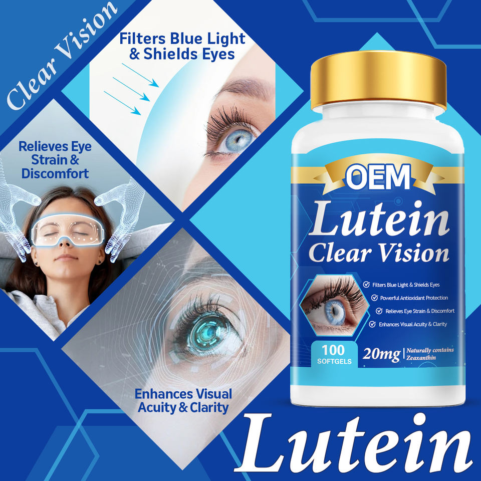 ลูทีน 20 มก. แคปซูลนิ่มเคลียร์วิชั่น ช่วยกรองแสงสีฟ้าและบรรเทาอาการปวดตา ซีแซนทีนสารต้านอนุมูลอิสระจากธรรมชาติเพื่อสุขภาพดวงตาของผู้ใหญ่