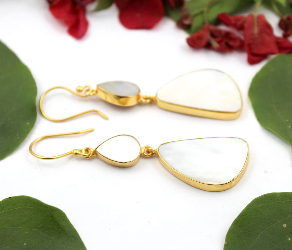 LUX ต่างหูห้อยไข่มุกสีขาวชุบทอง24K ทรงพัดลูกแพร์อเนกประสงค์ทำจากอินเดียสำหรับผู้หญิง
