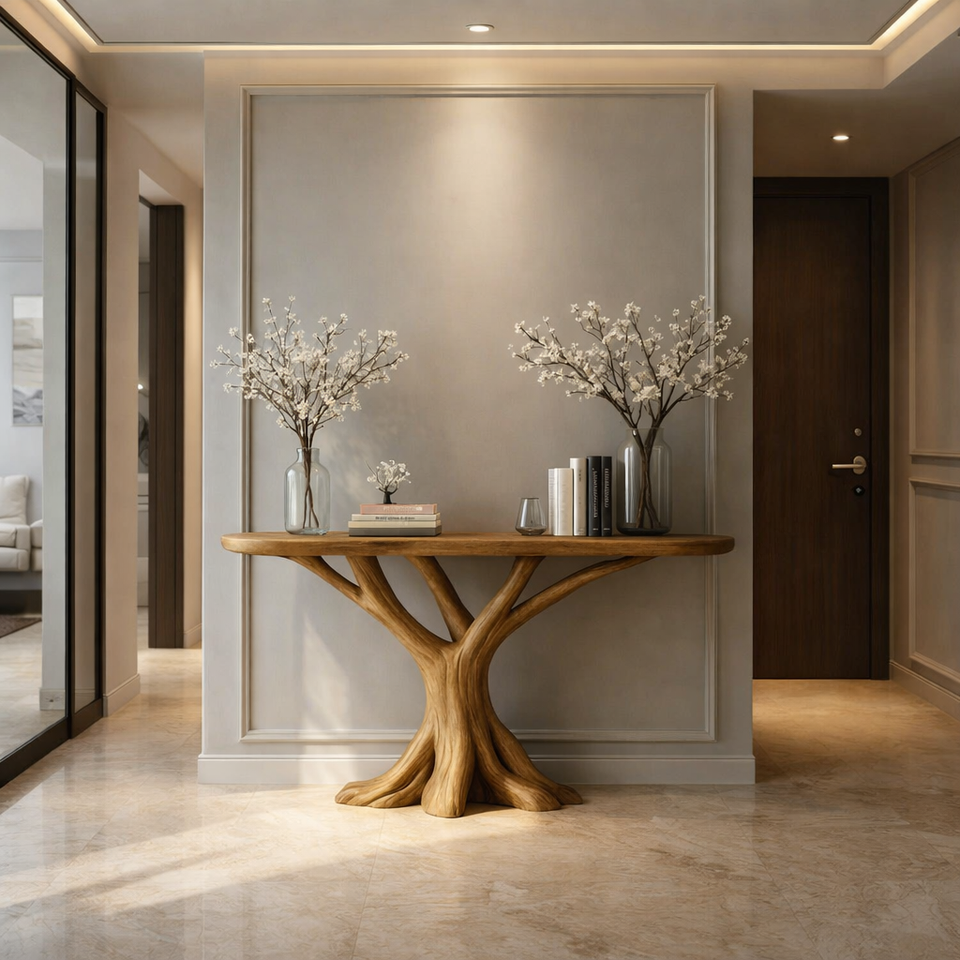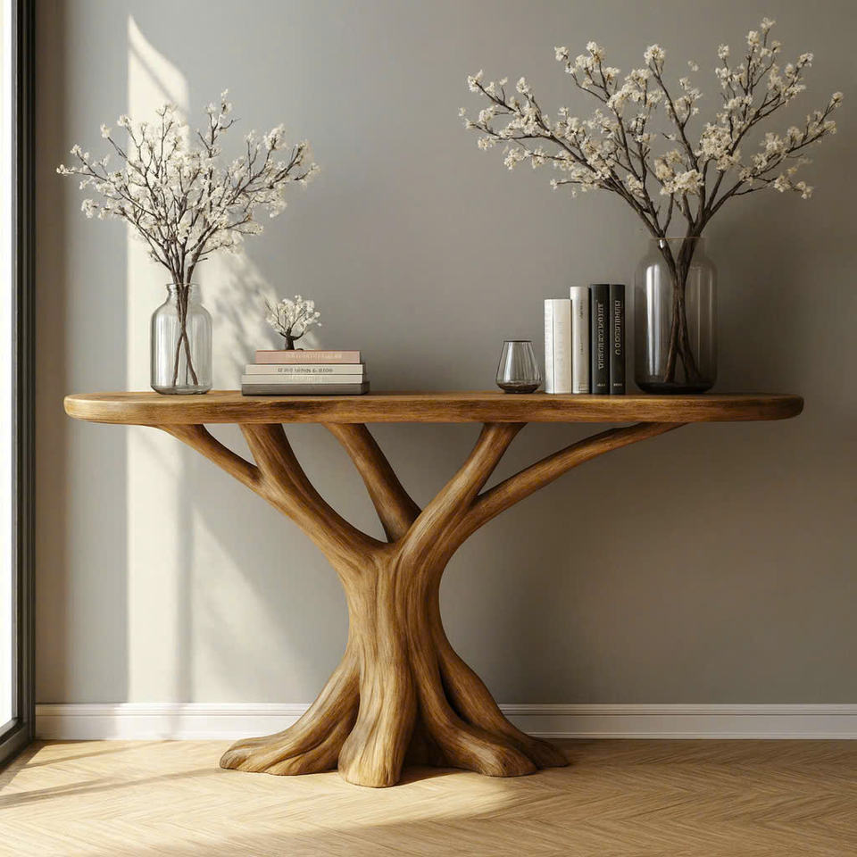 Luxali Handcrafted Modern Home Living Room Console Table Natural Solid Wood Curved Design Dining Entrance Use Accent Table