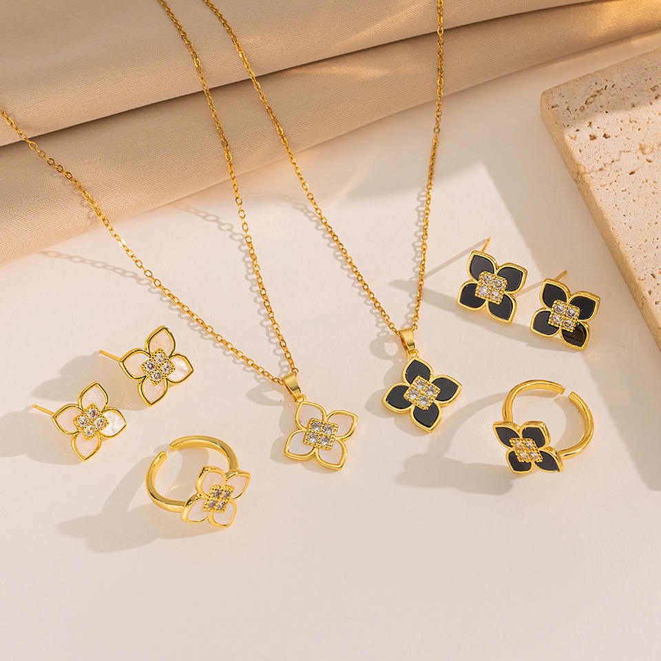 Luxe Stylish Jewelry Combos 18k Gold Coated Stainless Steel Micro Pave Zircon with Copper Accents
