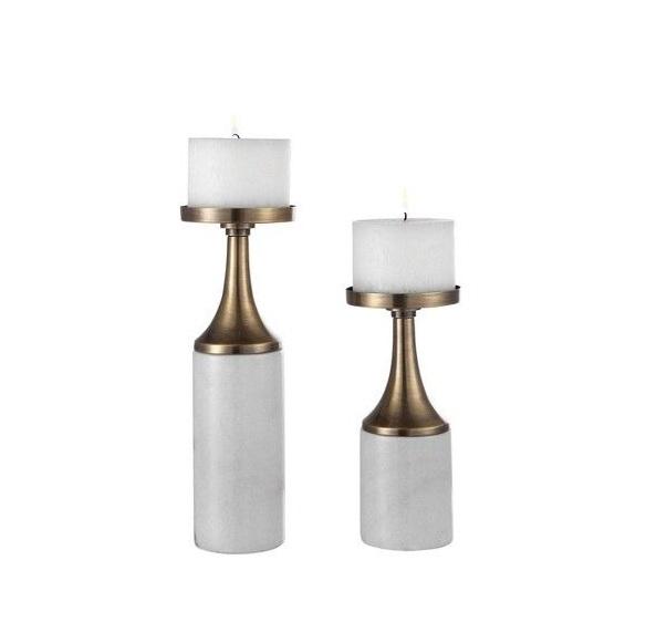 LUXE เชิงเทียนสีทองพร้อมฐานหินอ่อนสีขาวหรูหราเชิงเทียนแบบแท่งเทียนแบบเรียบง่ายทันสมัยตกแต่งบ้านที่เน้นความซับซ้อน