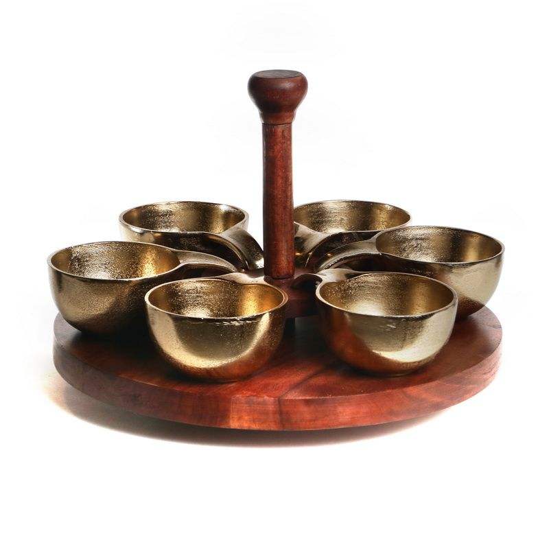 Luxeserve 5-ชามผลไม้แห้งพร้อมฐานไม้และโดมแก้วดีไซน์หรูหราและใช้งานได้
