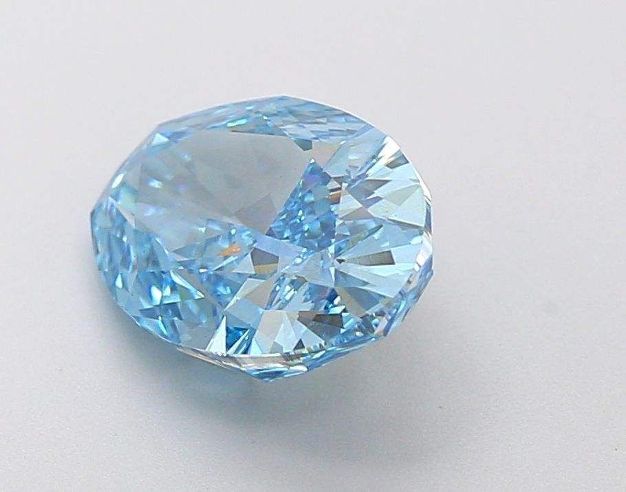 เพชรแล็บเกรด VS2 รูปไข่ น้ำหนัก 1.82 กะรัต สีฟ้าสดใส แบบแฟนซี เจาะด้วยเลเซอร์ ได้รับการรับรองจาก IGI สำหรับ Luxira Jewels
