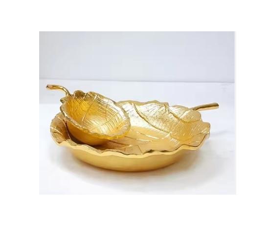 ชามผลไม้โลหะดีไซน์หรูพร้อมขอบกิ่งสีทองสำหรับตกแต่งเคาน์เตอร์จัดงานแต่งงาน