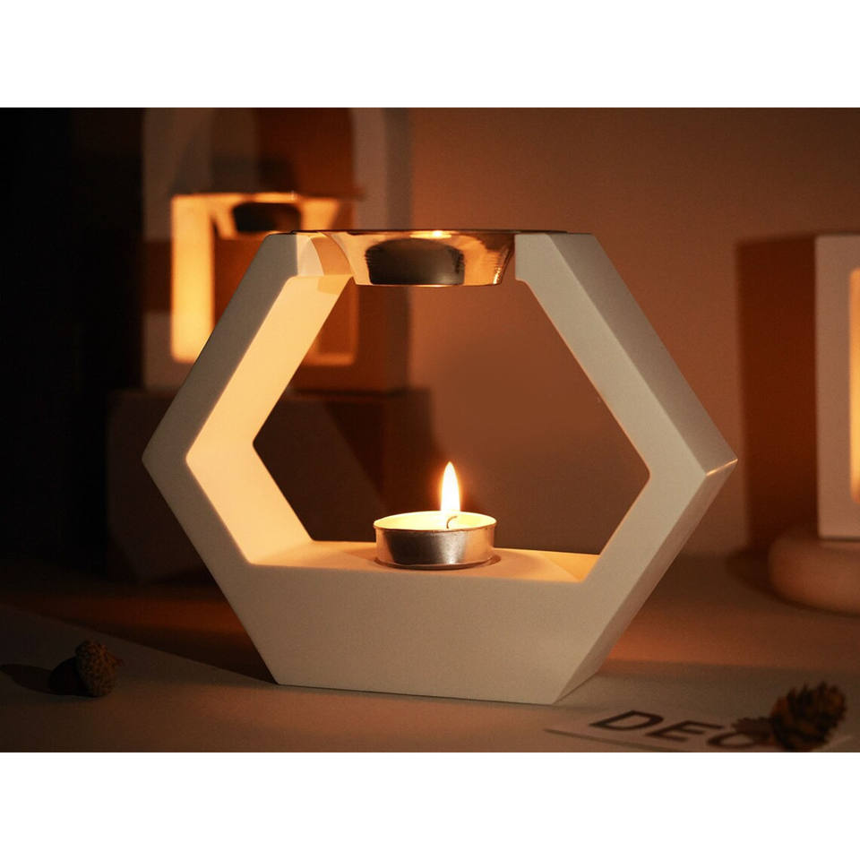 เครื่องอุ่นน้ำมันหอมระเหยทรงสี่เหลี่ยมพร้อมชามทองเหลือง