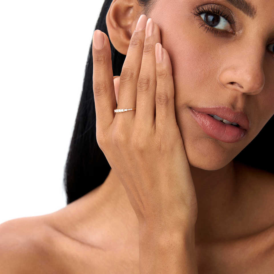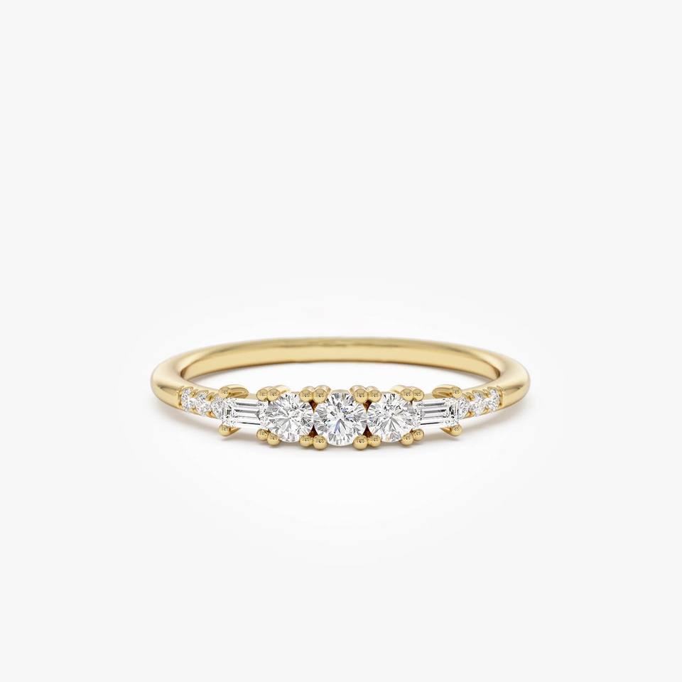 แหวนทองคำสีเหลือง18K สุดหรู0.27ctw ทรงกลม & บาแกตต์แล็บแหวนเพชรที่เน้นการปลูกในงานแต่งงานแหวนเพชรกลม