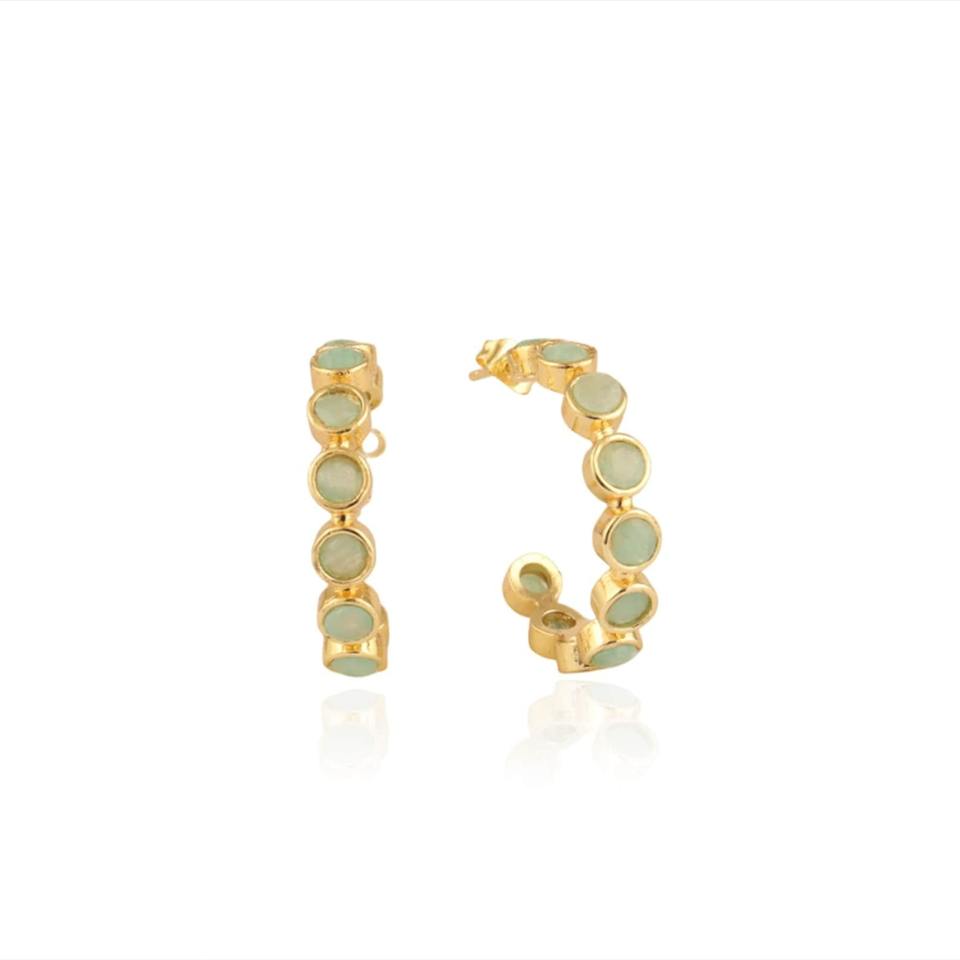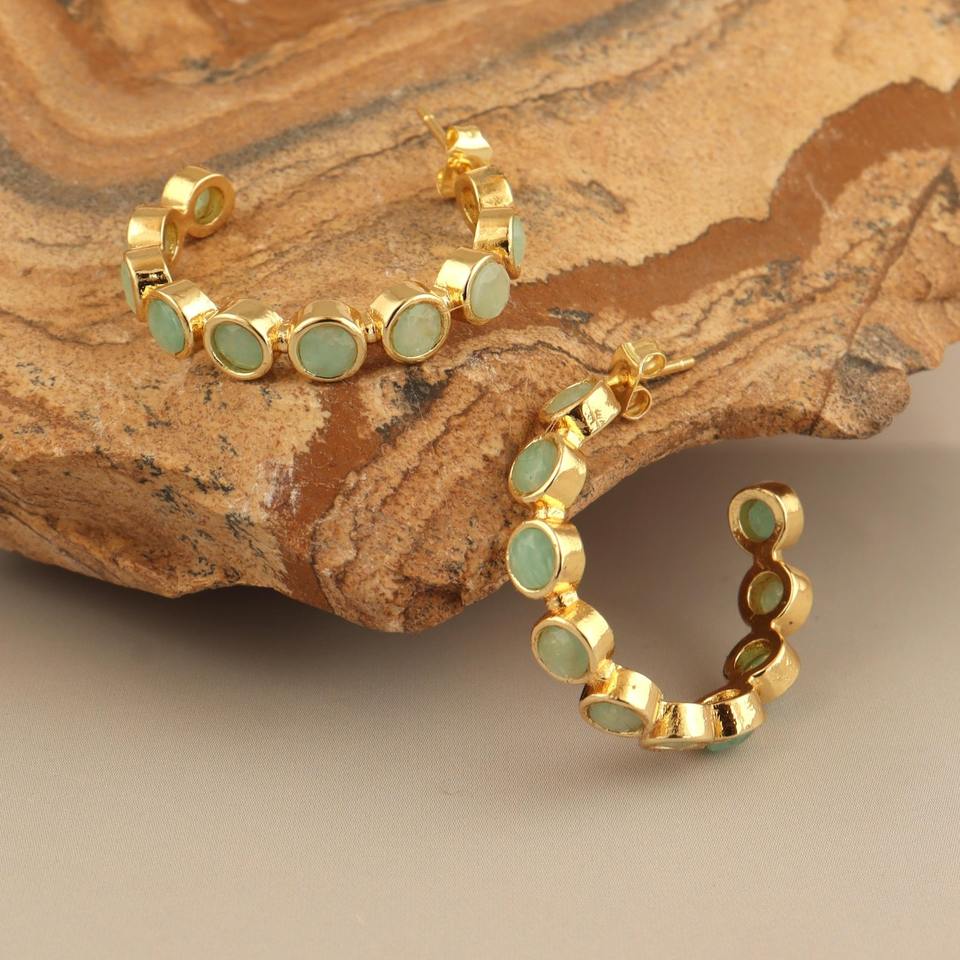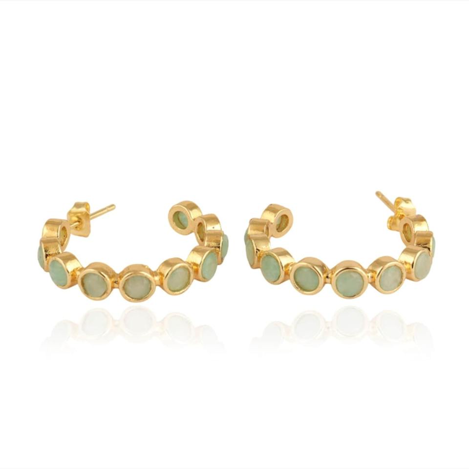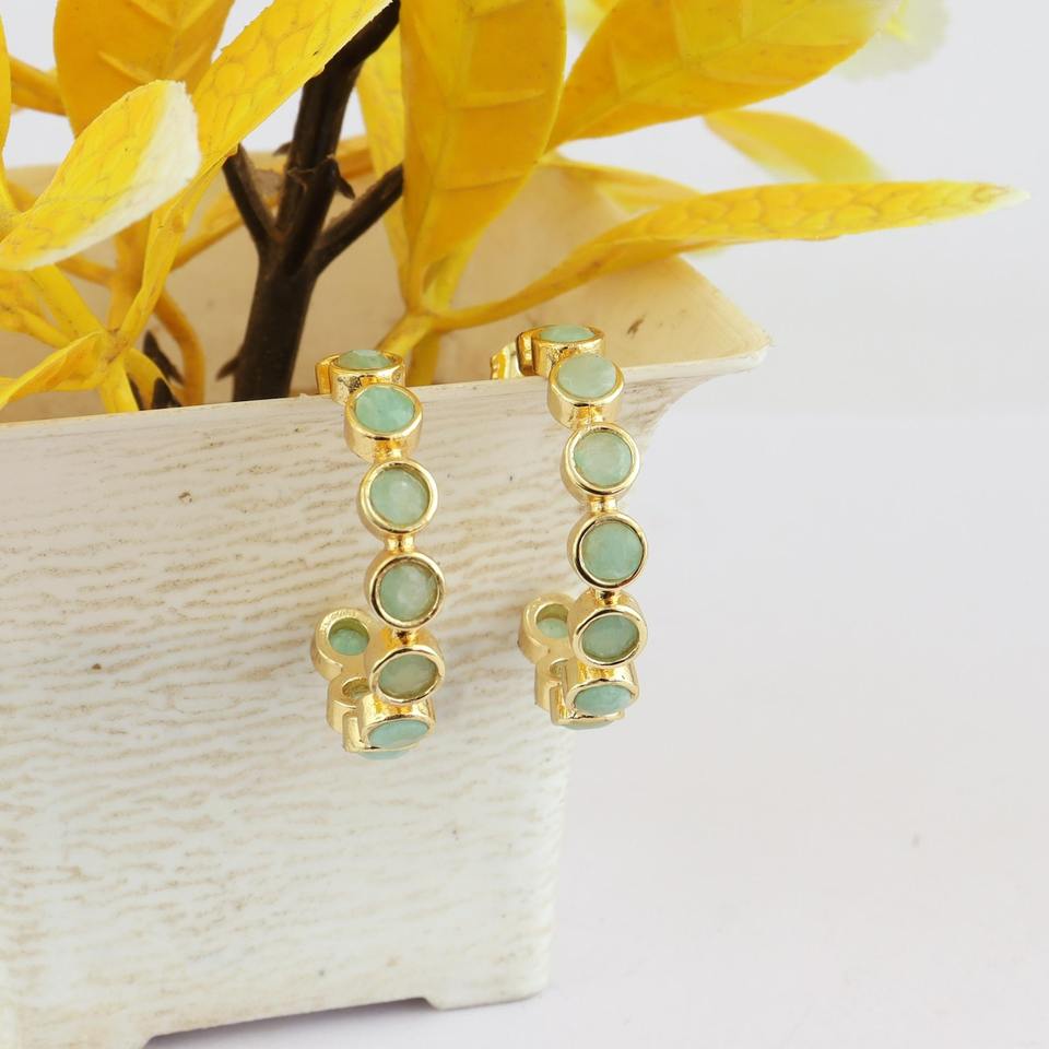 ต่างหูห่วงทรงกลมประดับอะมาโซไนต์ทรงเหลี่ยม ชุบทองคำ 18k หรูหรา ทำจากทองเหลืองแท้ เครื่องประดับแฟชั่นสไตล์โบโฮ เหมาะสำหรับทุกโอกาส