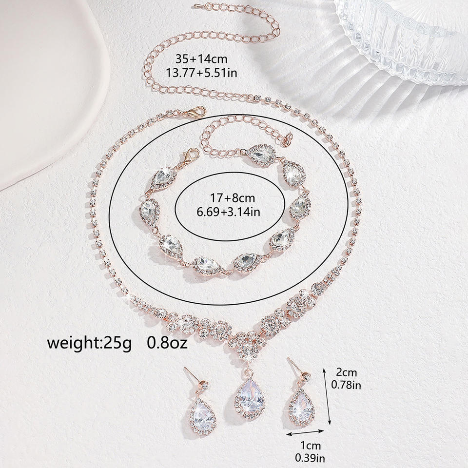 ชุดเครื่องประดับเจ้าสาวสุดหรู 2 ชิ้น สร้อยคอ ต่างหู คริสตัล ไรน์สโตน ชุบทอง/เงิน/โรสโกลด์ แฟชั่นสำหรับงานแต่งงานของผู้หญิง