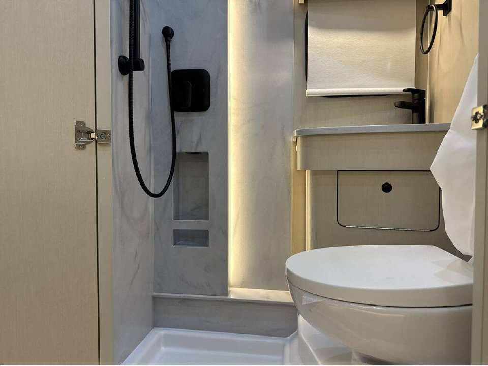 เตียง, ห้องครัว, ห้องน้ำ, อุปกรณ์จัดเก็บสินค้า, เครื่องปรับอากาศ, พื้นที่รับประทานอาหาร, ระบบบันเทิง
