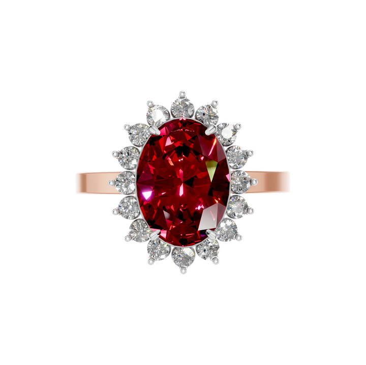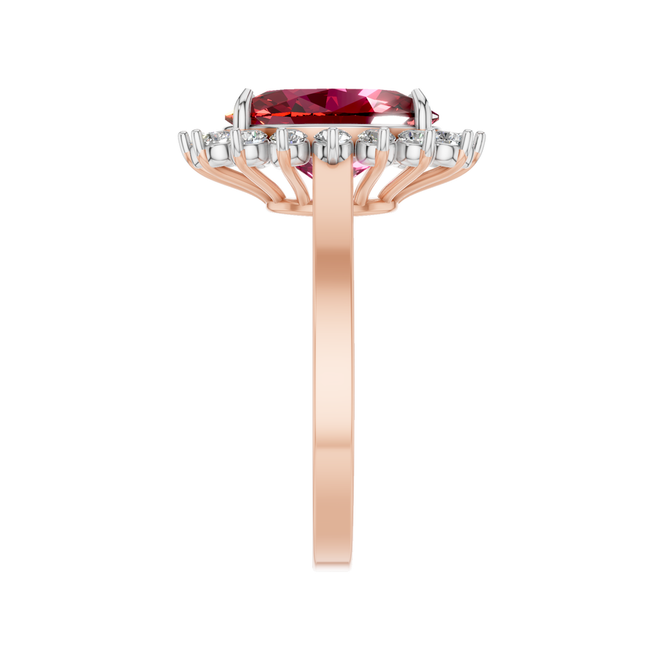 แหวนทับทิมทรงโซลิแทร์ขนาด 5 กะรัต หรูหรา ประดับเพชรธรรมชาติทรงรี ความใสระดับ SI สี GH ตัวเรือนทองคำแท้สีโรสโกลด์
