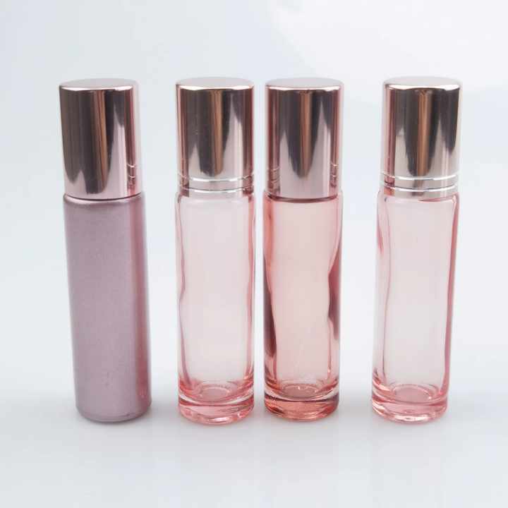 ขวดแก้วโรลออนน้ำมันหอมระเหยสีโรสโกลด์ขนาด 5 มล. 10 มล. แบบหรูหรา พร้อมลูกกลิ้งพลาสติก แก้ว และเหล็ก สำหรับบรรจุภัณฑ์เครื่องสำอาง