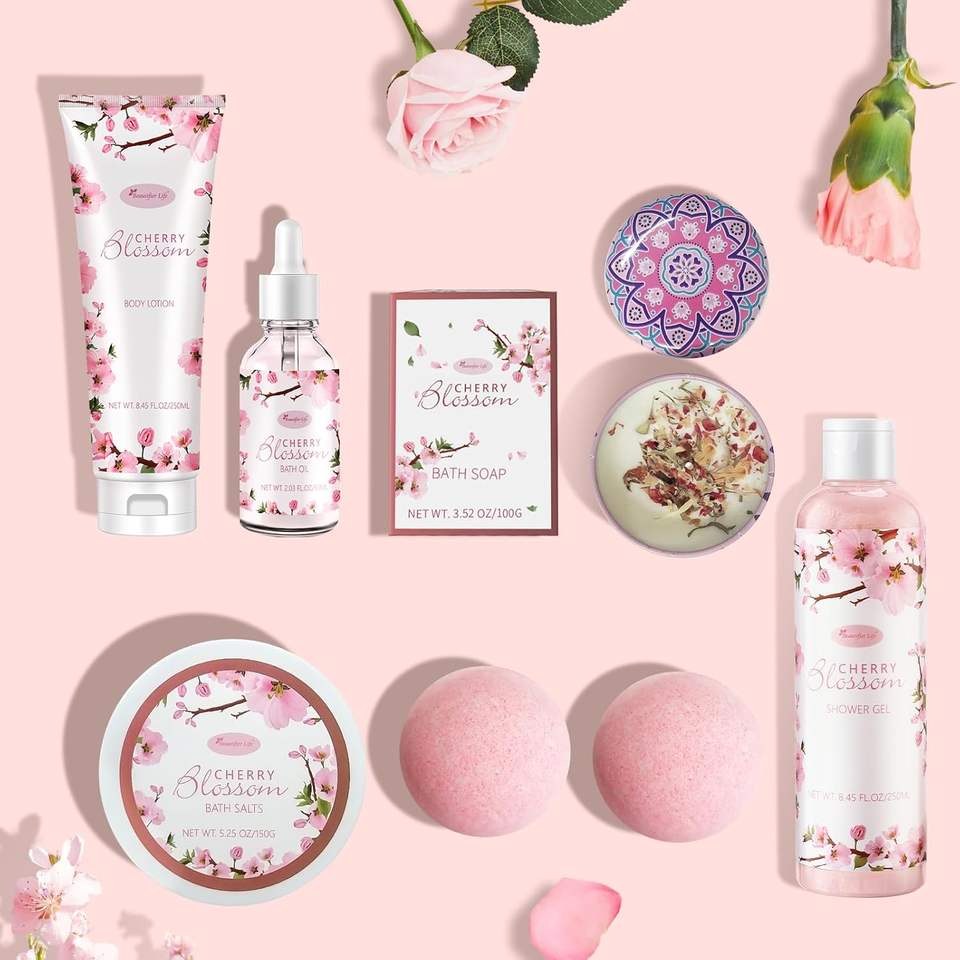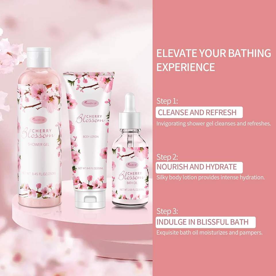 ชุดของขวัญอาบน้ำและบำรุงผิว BETTERWAY ออร์แกนิคสุดหรู 7 ชิ้น สำหรับผู้หญิง กลิ่นซากุระญี่ปุ่น ประกอบด้วยเจลอาบน้ำและโลชั่นบำรุงผิว