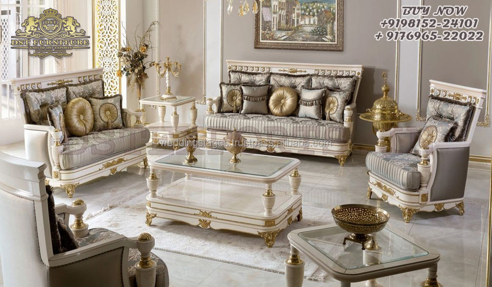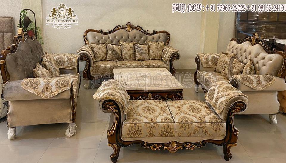 Luxurious 9-Seater Wood Sofa Set for Luxury Home Classic Living Room Furniture Designs for Stylish Comfort