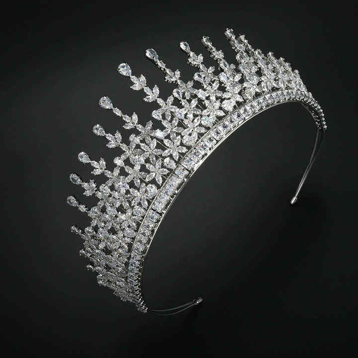 มงกุฏเพชรโมอิสสีเงิน925สุดหรูสำหรับงานแต่งงานพร้อมลูกแพร์