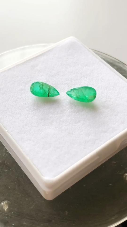 ต่างหูพลอยแซมเบียสีเขียวลูกแพร์2.62มรกตคุณภาพระดับ AAA สุดหรูสวยงามสวยงามตามธรรมชาติสุดหรู