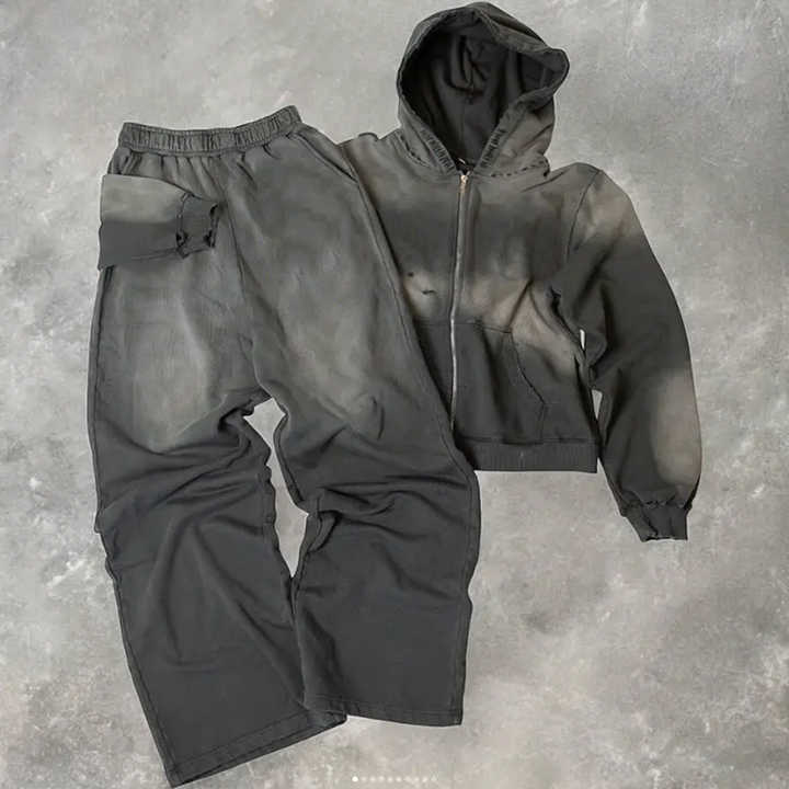 ชุดวอร์มผ้าซีดและเหงื่อสุดหรูที่มีดีไซน์ซิปชุดวอร์มสีจางมีฮู้ดและกางเกงขายาว100% ผ้าฝ้ายในปากีสถาน
