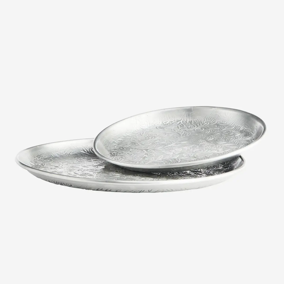 ถาดเสิร์ฟอลูมิเนียมทรงกลมหรูหราถาดออกแบบใหม่ล่าสุดสำหรับบ้านหรืองานแต่งงานโชว์รูมออกแบบการใช้งานดีไซน์เนอร์