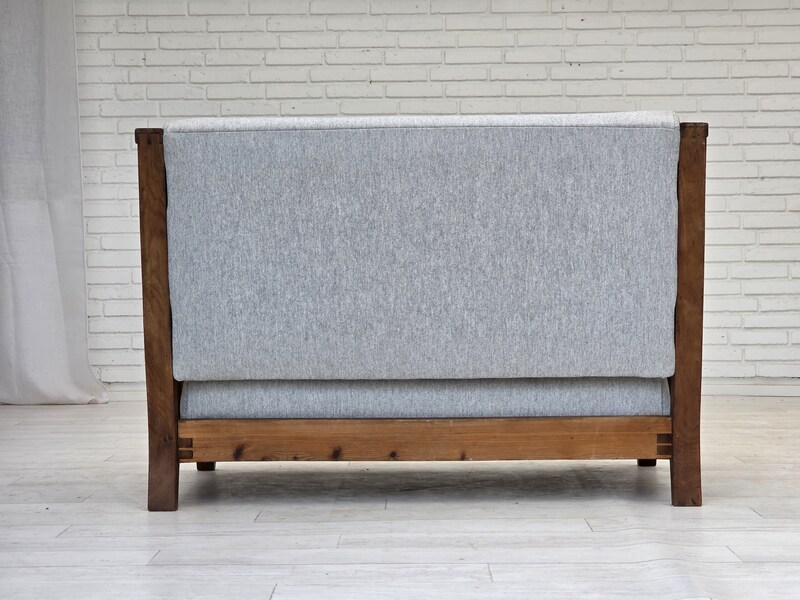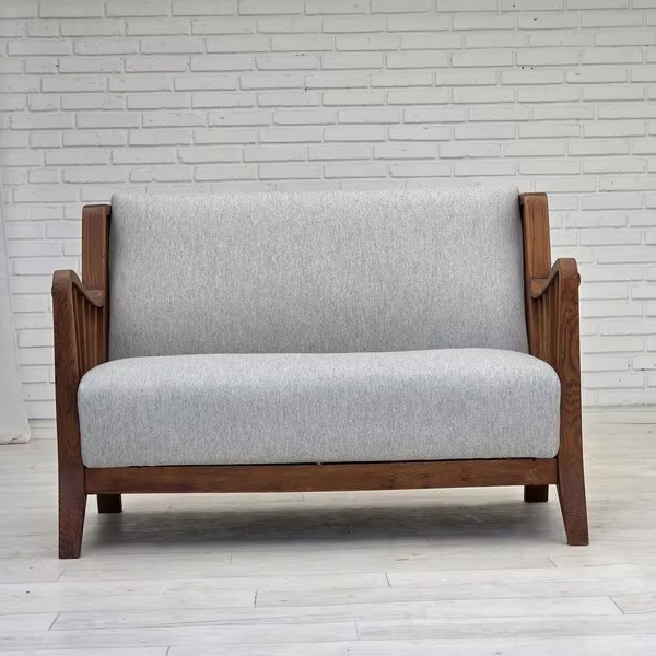 โซฟาสไตล์อาร์ตเดโคสุดหรูพร้อมโครงไม้วอลนัทขัดเงาและผ้าหุ้มเบาะสีงาช้างนุ่ม