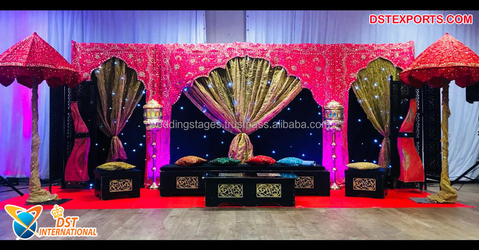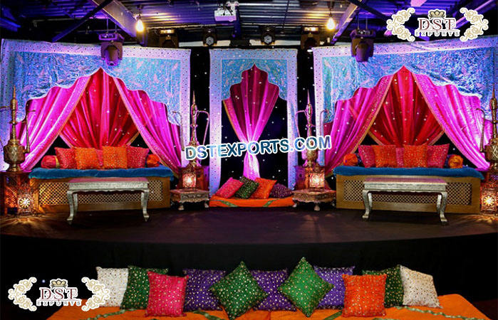 ฉากหลังที่หรูหราสำหรับเวที Mehndi,ฉากหลังของตกแต่งบนเวที Mehndi แบบปากีสถาน