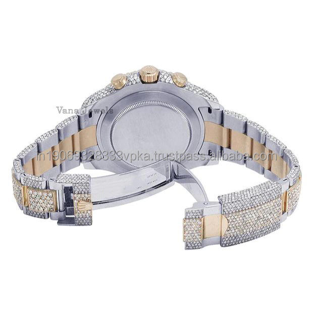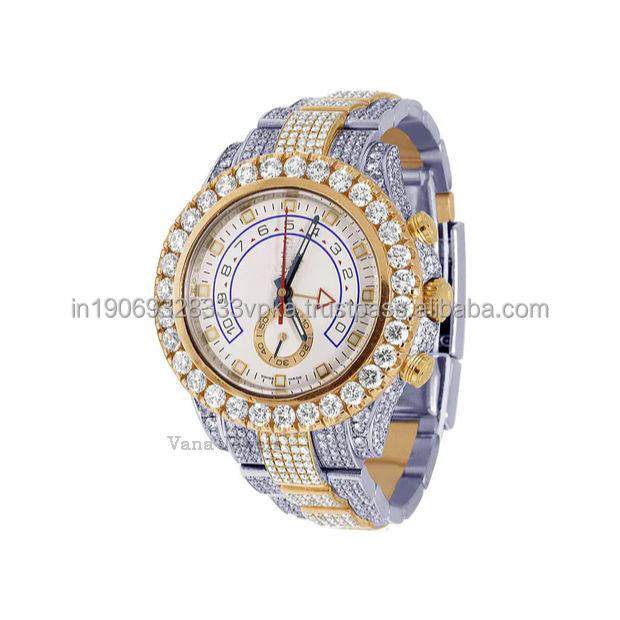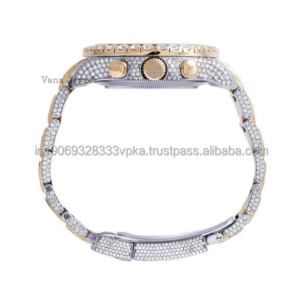 นาฬิกาข้อมือเพชรระบบอัตโนมัติสำหรับผู้ชายสุดหรูหน้าปัดกระจกทำจากสเตนเลสสตีลคุณภาพสูงสไตล์ฮิปฮอปสุดเท่