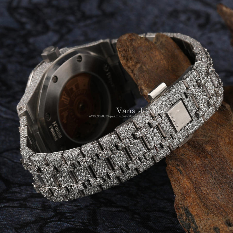 นาฬิกาข้อมือผู้ชายระบบออโตเมติกตัวเรือนสแตนเลสสตีลเพชรมอยซาไนต์น้ำแข็งขนาด41มม. สไตล์โบราณ