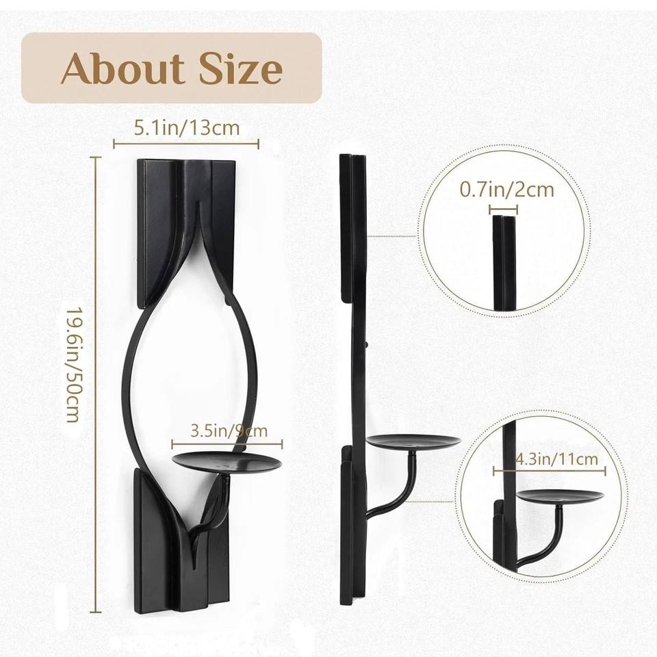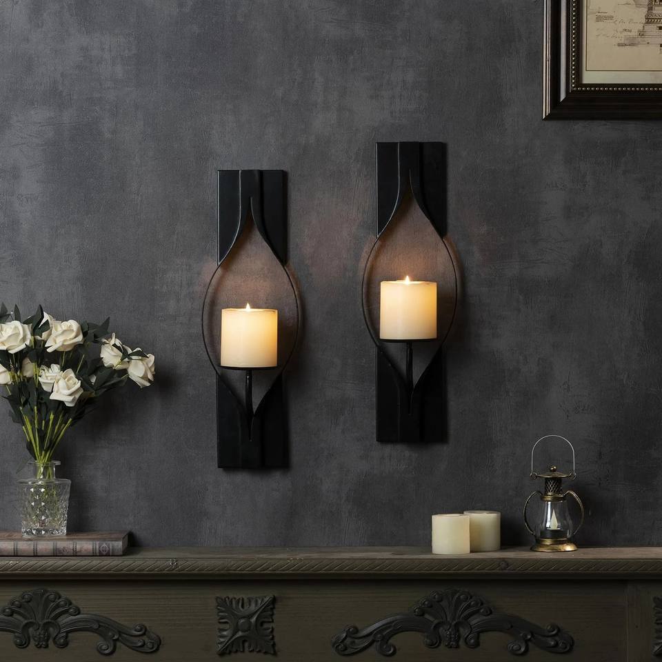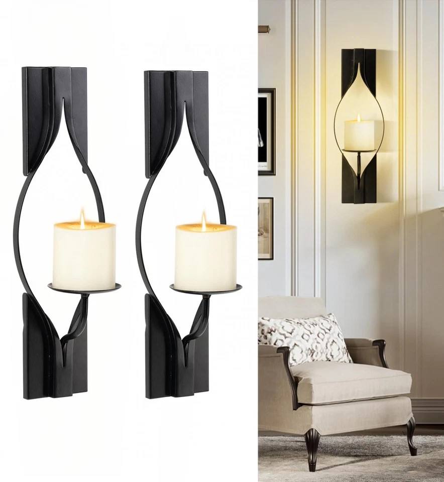 ชุดเชิงเทียนติดผนังโลหะสีดำสุดหรู ดีไซน์แกะสลักอย่างประณีต ทนทาน ให้แสงอบอุ่นสร้างบรรยากาศ สำหรับตกแต่งบ้านอย่างมีสไตล์