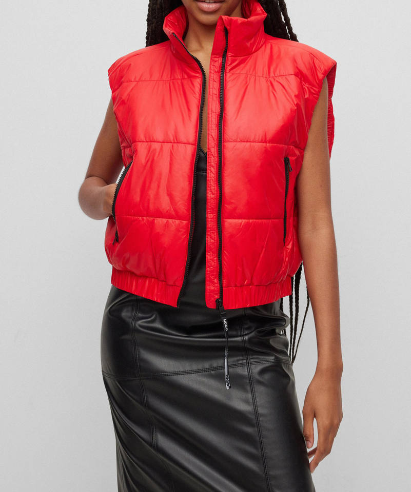 แจ็กเก็ตขนปลาปักเป้าสั้นสำหรับผู้หญิงแฟชั่นระบายอากาศได้หรูหราผ้าไนล่อนออกแบบโลโก้ได้ตามต้องการ