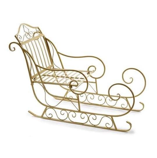 รถเลื่อนหิมะสีทองหรูหราสำหรับตกแต่งบนโต๊ะทำจากโลหะรูปรถเลื่อนซานต้าสีทองดีไซน์ทันสมัย