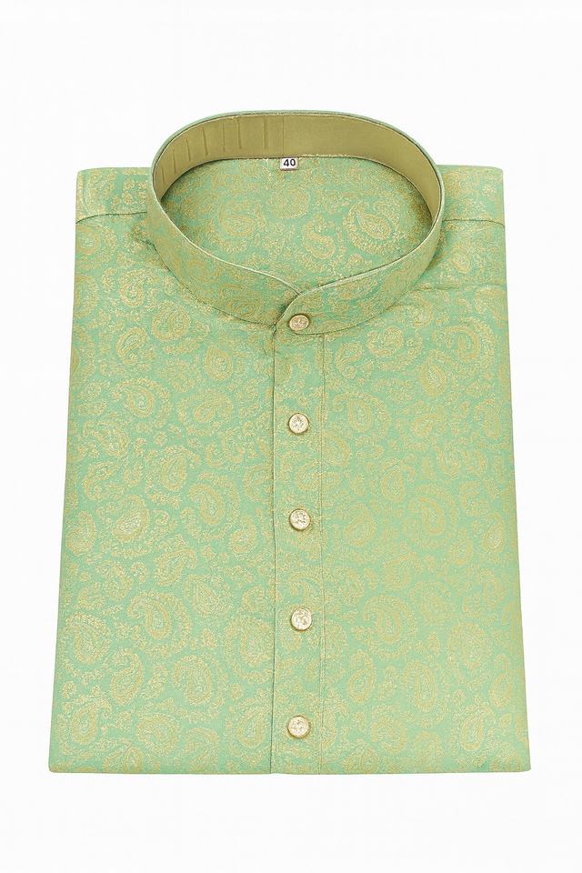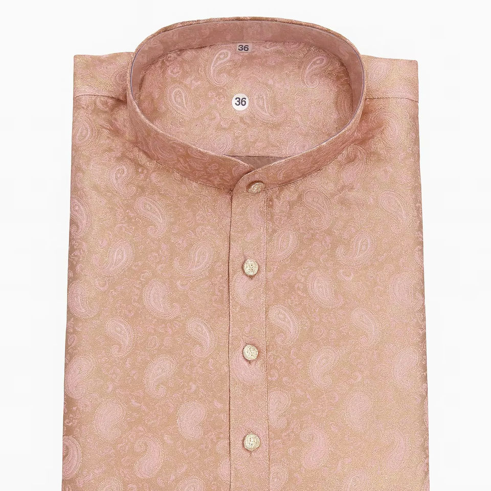 เสื้อเชิ้ตคอตตอนลายพีชเพอสลีย์สำหรับผู้ชาย, เสื้อผ้าสไตล์พื้นเมืองดั้งเดิมขนาดพรีเมี่ยมสวมใส่ได้หลากหลายโอกาสในการแต่งงานที่สมบูรณ์แบบ