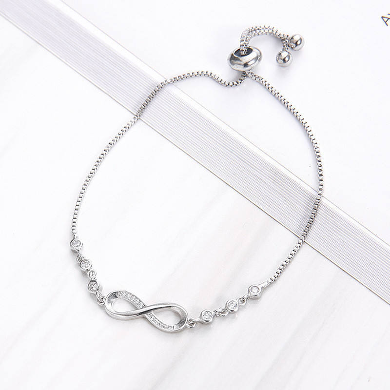 สร้อยข้อมือคริสตัลหรูหราประดับเพชรหมายเลข 8 ปรับขนาดได้ พร้อมจี้รูปอินฟินิตี้ สำหรับผู้หญิง เครื่องประดับแฟชั่น