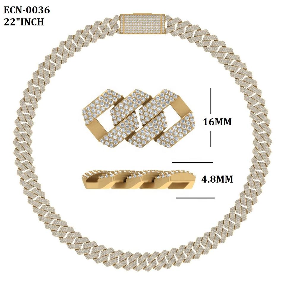 สร้อยคิวบาสุดหรู ทองคำแท้ 10K ขนาด 16 มม. ยาว 22 นิ้ว ประดับเพชรธรรมชาติทรงกลม มีทุกขนาด