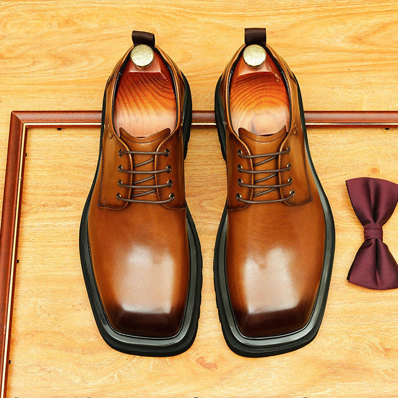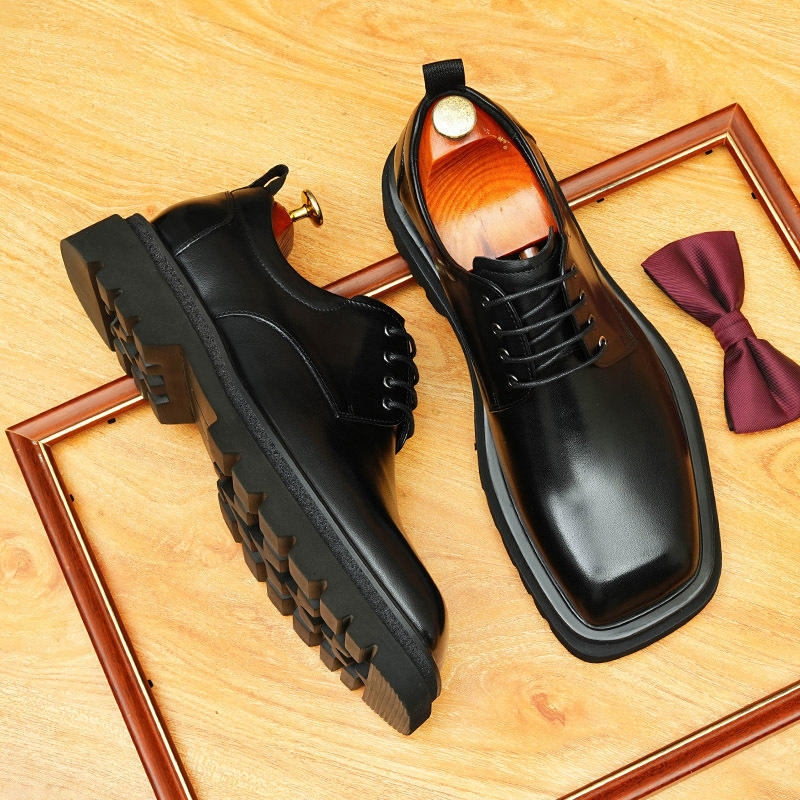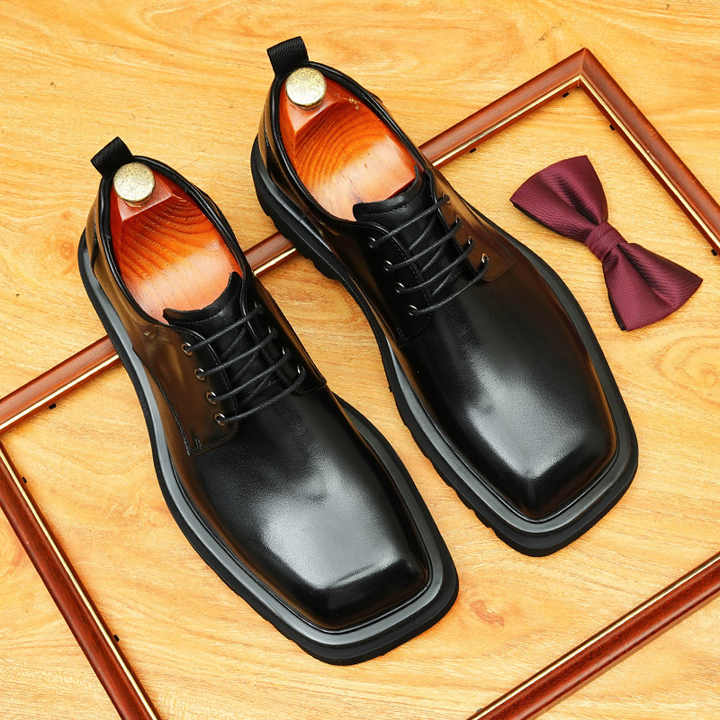 รองเท้าหนังแท้สำหรับงานแต่งงานแบบเป็นทางการพื้นหนาสวมใส่สบายระบายอากาศได้หัวแหลม