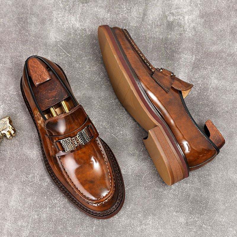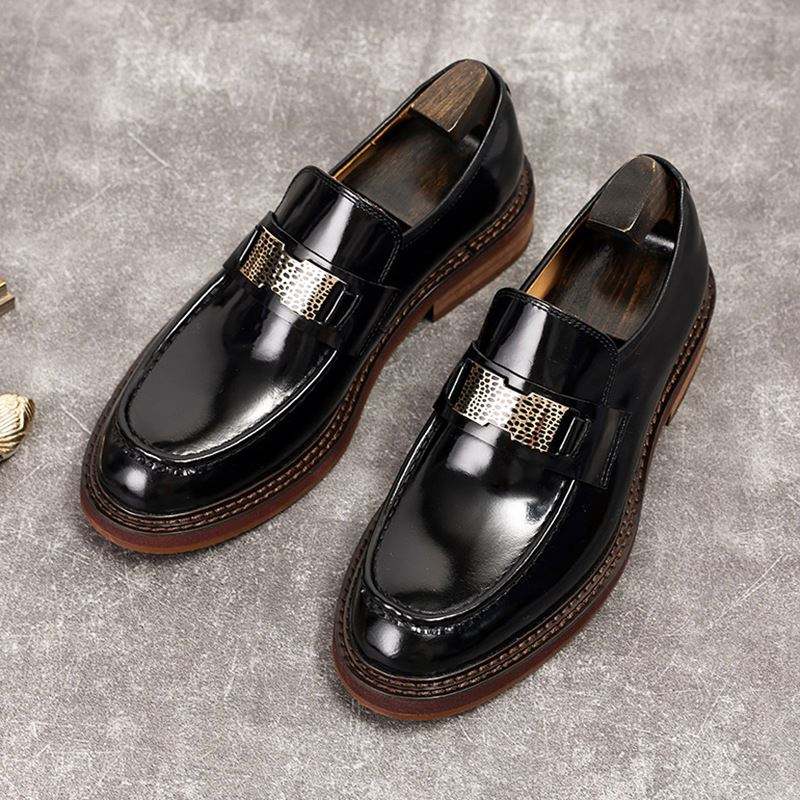 รองเท้าโลฟเฟอร์หนังเงาขอบมุกแบบสวมสำหรับผู้ชาย ดีไซน์หรูหราสั่งทำพิเศษสำหรับธุรกิจและลำลอง ฤดูใบไม้ร่วง พื้นยางกันน้ำ