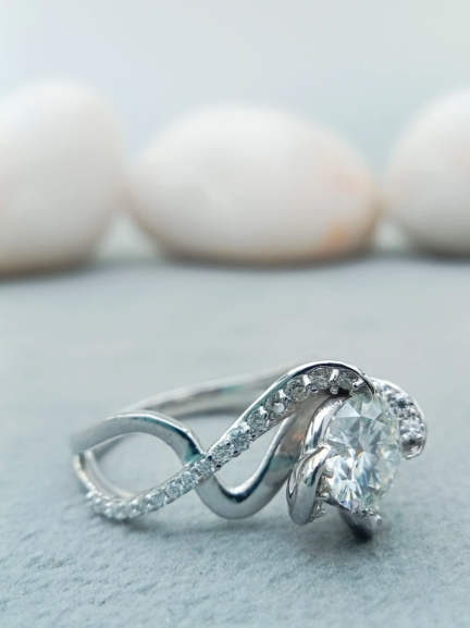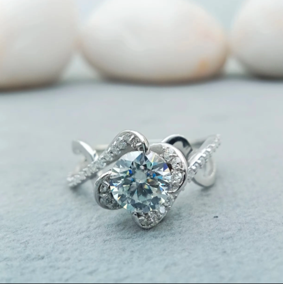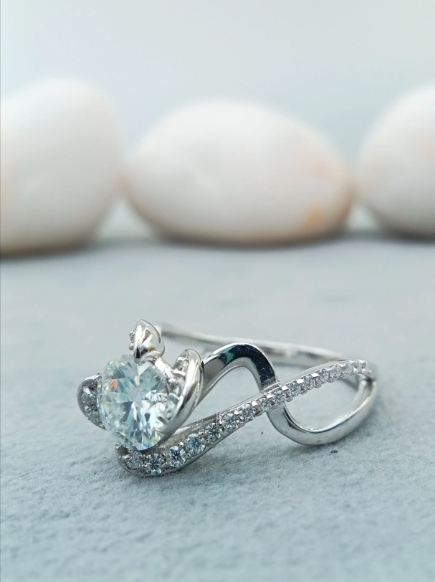 แหวนเพชรโมอิสสีทอง14K แหวนหมั้นทำจากเงินสเตอร์ลิง925ออกแบบได้ตามต้องการแบบหรูหรา
