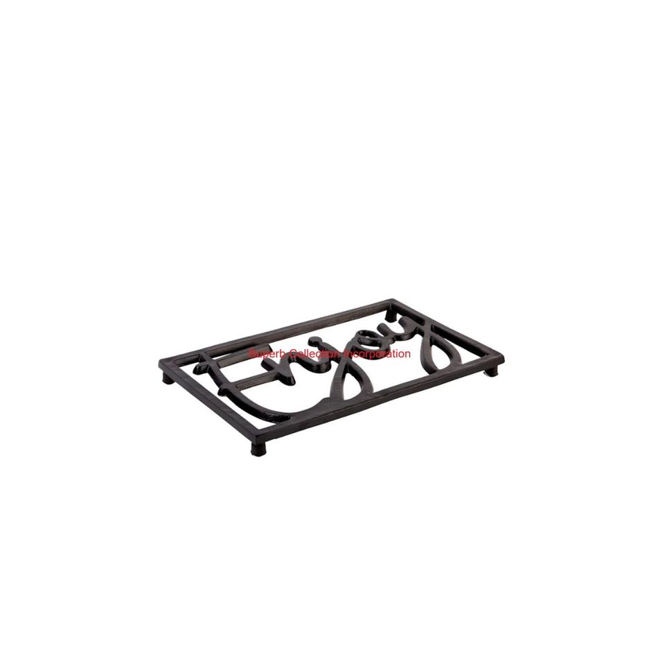 ขาตั้งสามขาเหล็กหล่อสีดำตกแต่งอย่างหรูหราสำหรับหม้อร้อนและกระทะโลหะทนความร้อนที่ป้องกันโต๊ะในครัวอุปกรณ์เสริมสำหรับรับประทานอาหาร