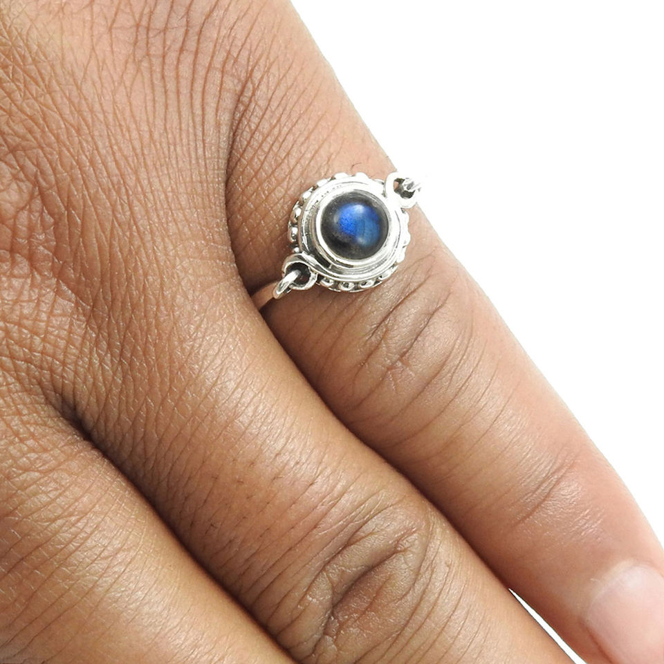 แหวนอัญมณี100% เงินแท้สำหรับผู้หญิงทำด้วยมือ925หรูหราผลิตจากแร่แลบราโดไรต์ธรรมชาติ